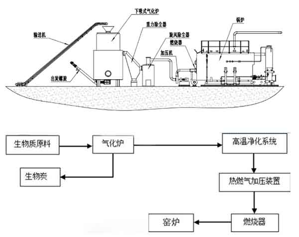 采用生物質(zhì)氣化多聯(lián)產(chǎn)熱燃?xì)夤?,完全解決了焦油和木醋液的產(chǎn)生,避免了對(duì)環(huán)境的二次污染,降低了設(shè)備、配套設(shè)施和維護(hù)成本。同時(shí)也充分利用了熱燃?xì)獾娘@熱,使燃?xì)獾臒嶂档玫教岣?。生物質(zhì)熱燃?xì)馓娲济?、燃油和燃?xì)忮仩t供熱,提高了能源利用效率,改善環(huán)境質(zhì)量。
